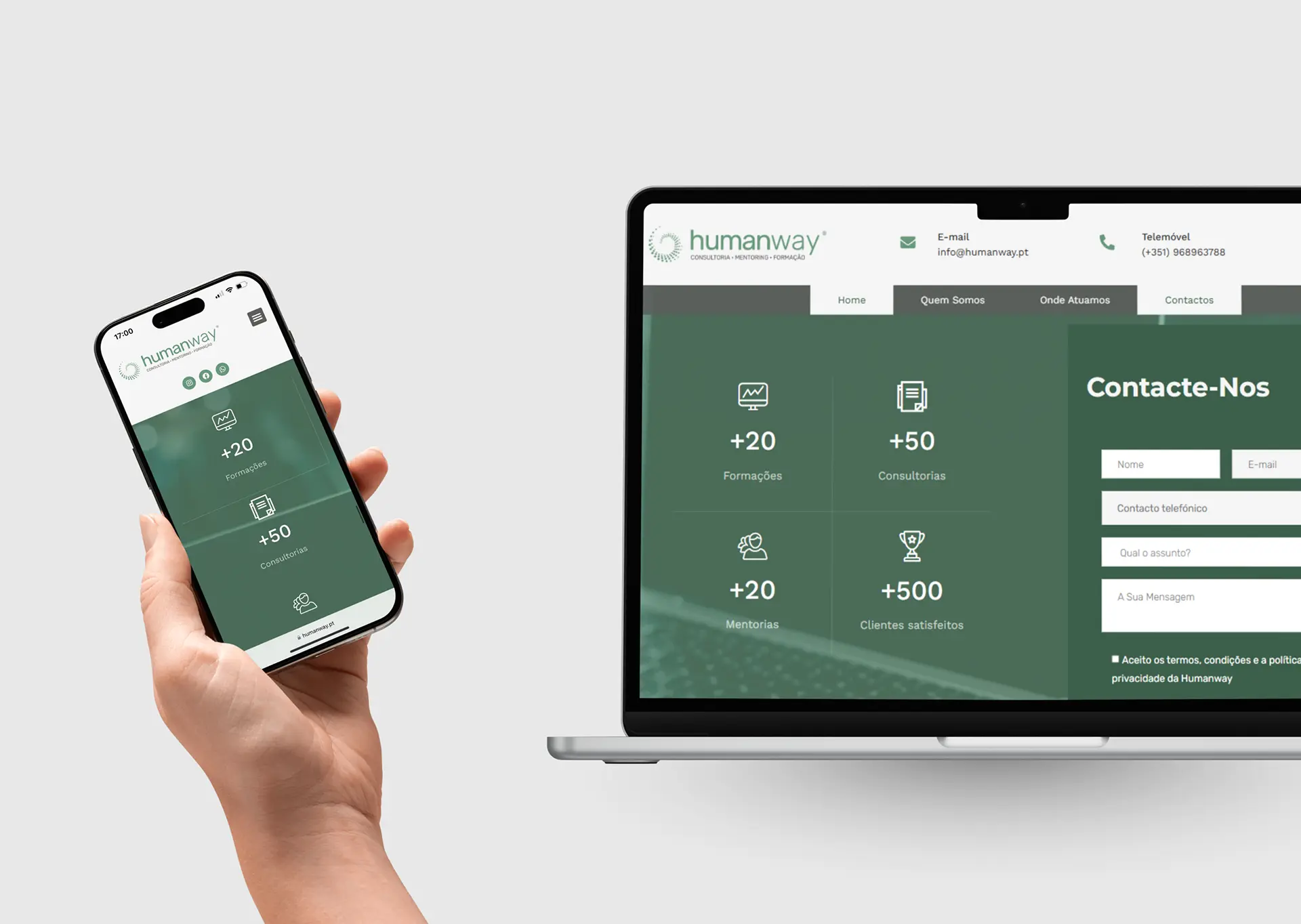Desenvolvemos o Website One Page da Humanway, projetado para comunicar de forma clara e direta a identidade e os serviços da marca.